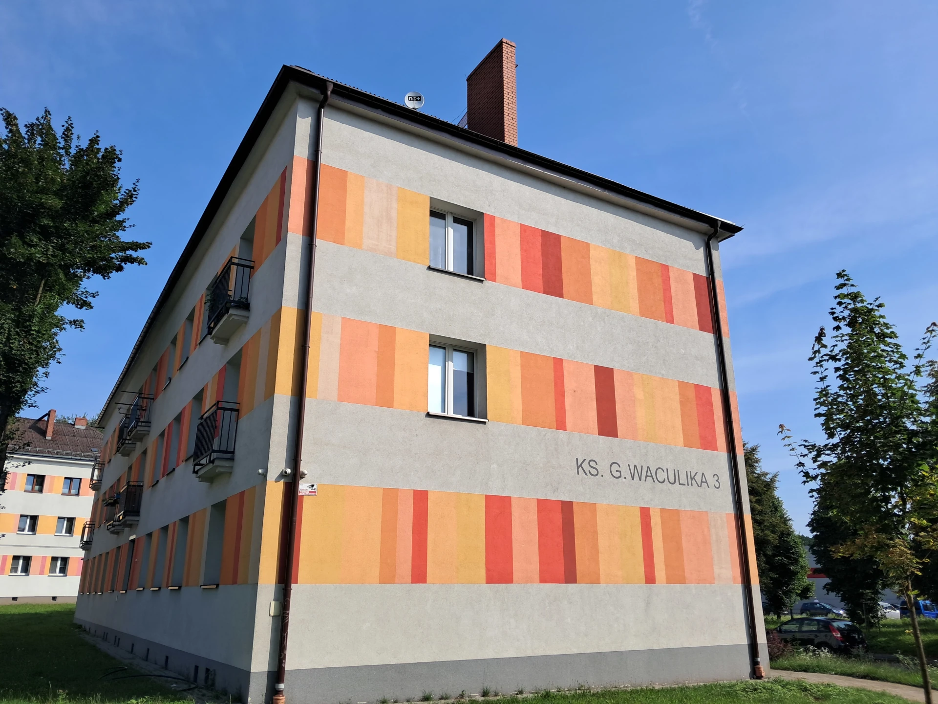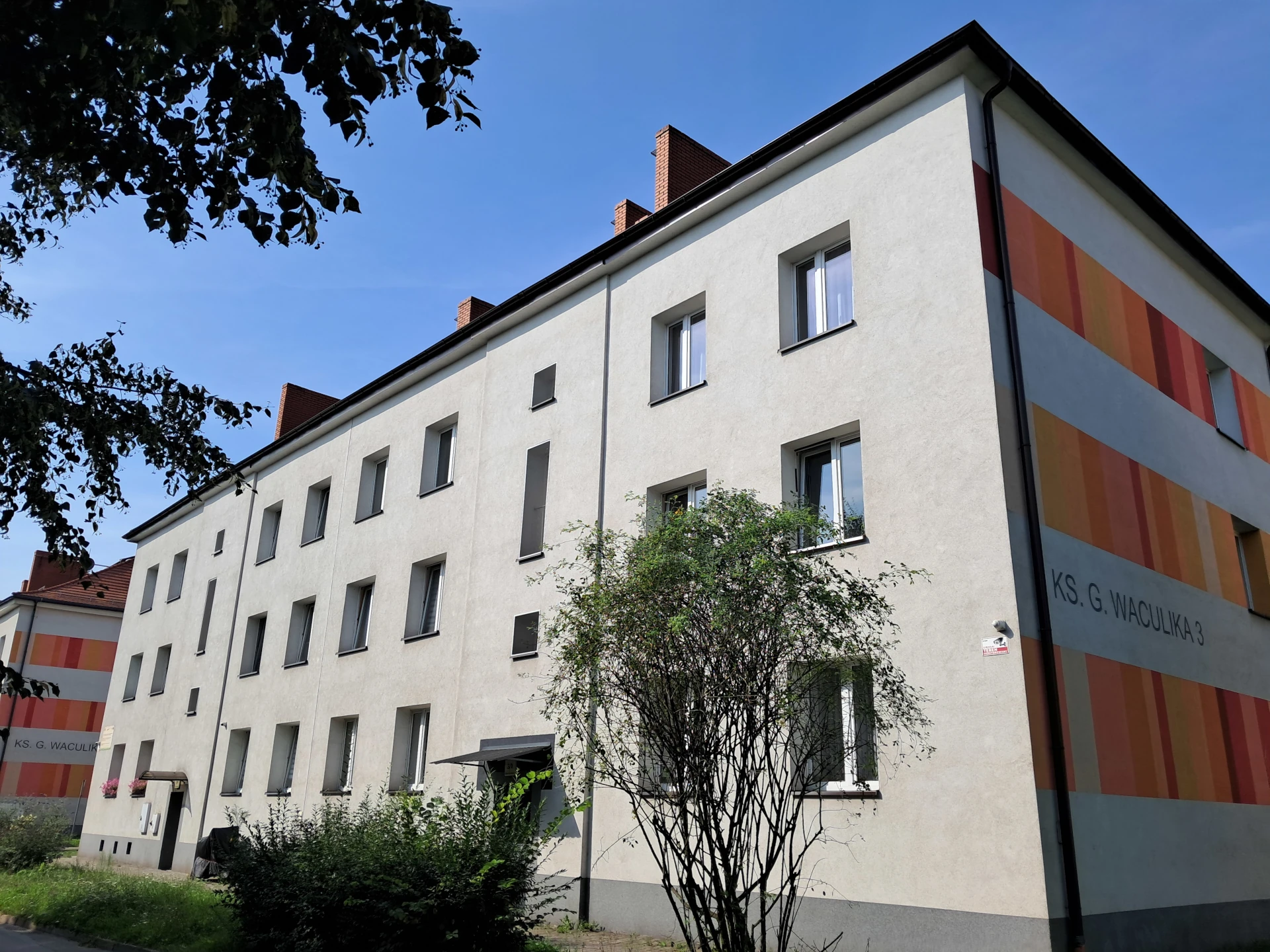 Budynek Wspólnoty Mieszkaniowej przy ul. Ks. Kpt. Gerarda Waculika 3, przed i po termomodernizacji. Priorytetem Wspólnoty była likwidacja niskiej emisji oraz termomodernizacja. Projekt zrealizowany przy współudziale dofinansowania ze środków Programu Operacyjnego Infrastruktura i Środowisko 2014-2020.